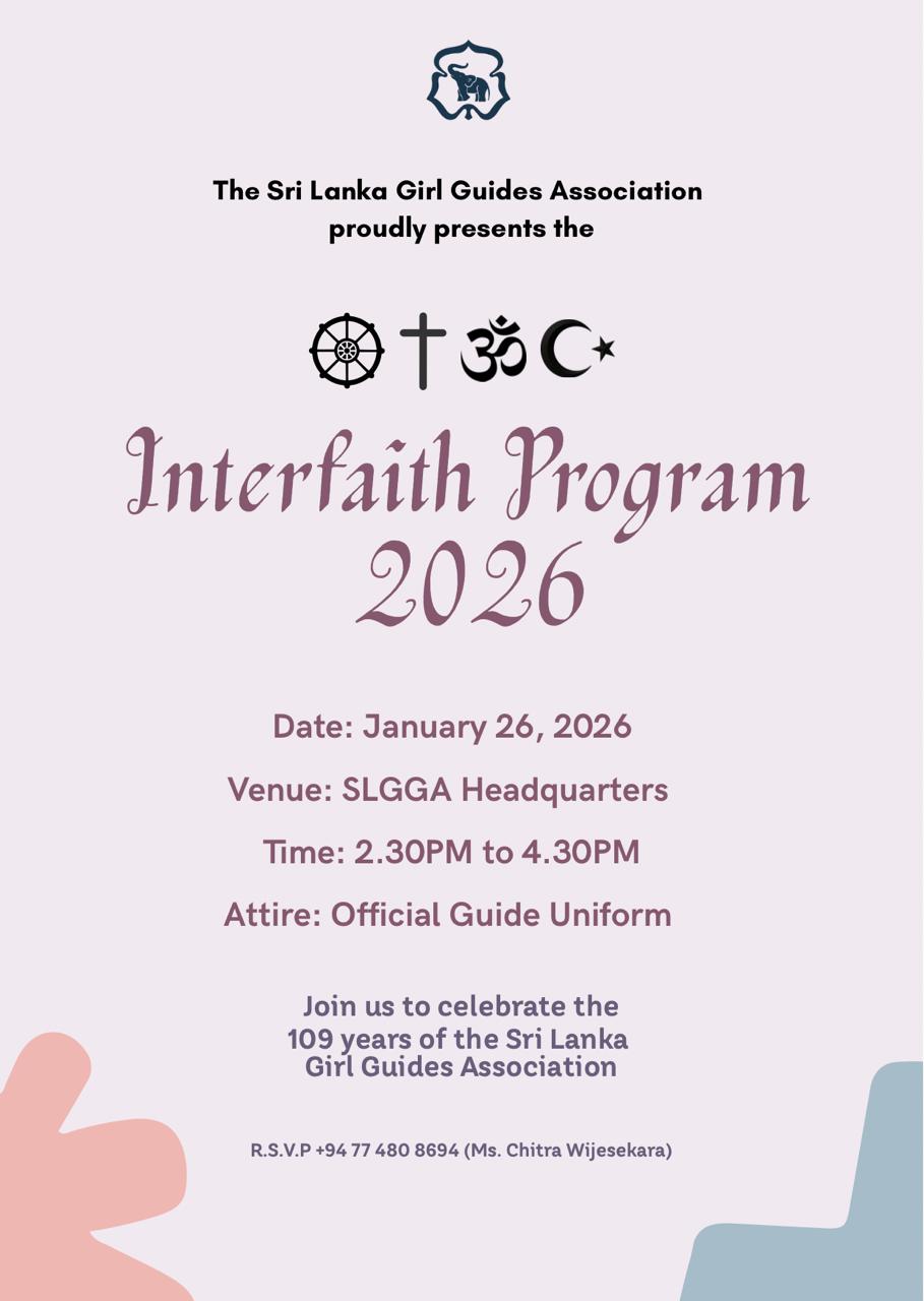 The Sri Lanka Girl Guides Association presents the Interfaith Program 2026, a national event celebrating unity, mutual respect, and harmony among faiths.